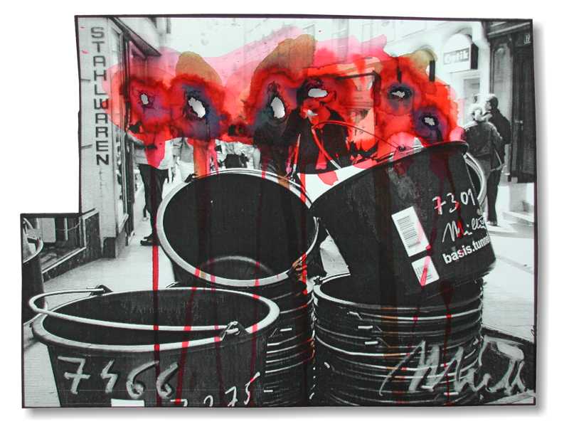 . Thematisch unterschiedliche Projekte; meist Laser,- oder Tintendruck auf Papier / Katrton und danach "gelüftet", teils Vorstudien zu Tafelbildern. "Skizzen" sind selten größer als Din A4, meist kleiner. . Gewisse Objekte, wie etwa Kübel, Heindl, Taschenspiegel können im Gelegenhietskauf erworben werden.