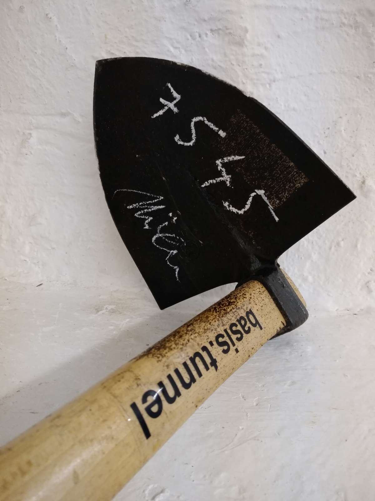 Für Tunnelgräber zum Graben; für Spiegelputzer zum Schürfen im Basistunnel. Das Heindl ist sowohl Hacke als auch Schaufel. Damit kann der Kübel mit Aushub gefüllt werden und somit as ideale Werkzeug für Tunnelgräber und Spiegelputzer im Basistunnel. 32 Heindl habe ich Signiert und Punziert.