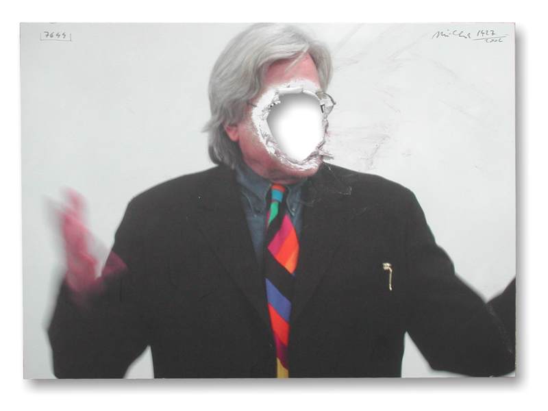 Die Durchreibung (gelüftet) als Manifestation der Abwesenheit der Bildfläche. Ein Hinweis, auf den Bereich, der über die sinnliche Erfahrungen hinausreicht. Luft ist eines der Elemente der Malerei. Die Durchreibung produziert Abwesenheit der Bildfläche. Mittels solcher Lüftungen (Durchbohrungen, Herausschneidungen, Ausbrennungen usw.) in der Bildfläche entsteht ein Leer-Raum als eines der .Elemente der Malerei. Es handelt sich dabei nicht um ein "Hinzutun" sonder nun ein Wegnehmen durch welches nicht nur die Umgebung des Weggenommenen eine neue Bedeutung bekommt, sondern ein Schutz für die undarstellbare spirituelle Realität der Person, an deren Realität (die Seele) nur mehr transzendent hingewiesen wird. Luft gehört wie Feuer und Wasser zu den flüchtigen Elementen der Malerei, doch das Loch präsentiert auch das "Nichtsein" (La Makaan) bzw. die Abwesendheit eines Malgrundes so wie im Pullover das durchgescheuerte Stück, welches in das Grab mitgenommen wird und dort seine Realität zurückbekommt .. ... mehr. Technisch gesehen - sofern der Malgrund Papier ist - habe ich solange gerieben bis ein Loch entstand; bei Leinwandgemälden habe ich Löcher in die Leinwand geschnitten und bei Dias oder Negativen mit dem Lötkolben transzendiert.