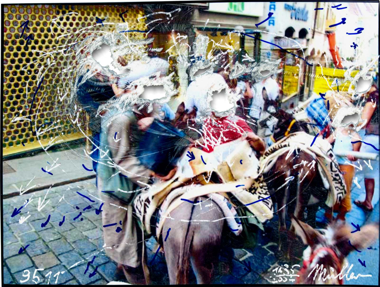 Kleine Bilder, unterschiedlicher Thematik, gekratzt und/oder durchgerieben, usf. meist Tinte(nstrahldruck) auf Papier, Photographie bearbeitet mittels Lüftung, Ritzung, Farbe usf. . Als Eseltreiber transportierst du deinen Aushub aus dem Basistunnel am Rücken eines Esels vom Tunneleingag in Graz oder in Gradez bis zum Zwischenlager. Dieser Aushubtrabsport - eines selbst gesuchten Eseltrecks entlang der Orientierungslinie - kann dir ein unvergleichliches Erlebnis sein. Hast du aber die Absicht Spiegelputzer zu sein, erlebst du deinen Aushubtransport als heiklen sakralen Prozess. Solltest du keinen eigenen Esel besitzen, kannst du dir (bis es eine Betriebseigene Eselzucht gibt) irgendwo einen Esel mieten oder kaufen. Du kannst allein mit einem Esel oder in der Gruppe mit mehreren Eseltreibern bzw. Esel transportieren. |