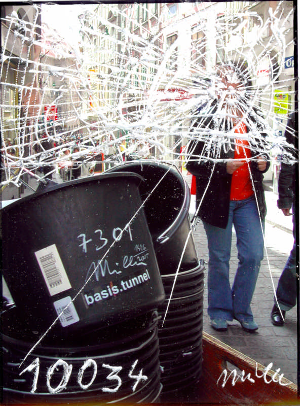 Diese Kunst-Kübel sind für museal veranlagte Proponenten des Projekts konzipiert und der Aushub aus dem Basistunnel kann darin temporär zu Hause, im Museum, im Tresor usf. zwischengelagert werden, muss letztlich aber zum Endlager gebracht werden. Die Hauptbuchnummer ist mit Wachskreide geschrieben und kann daher abgerieben werden. Früher oder später lösen sich ohnehin alle Kunstwerke auf, ob sie nun im Museen lagern oder anderswo.