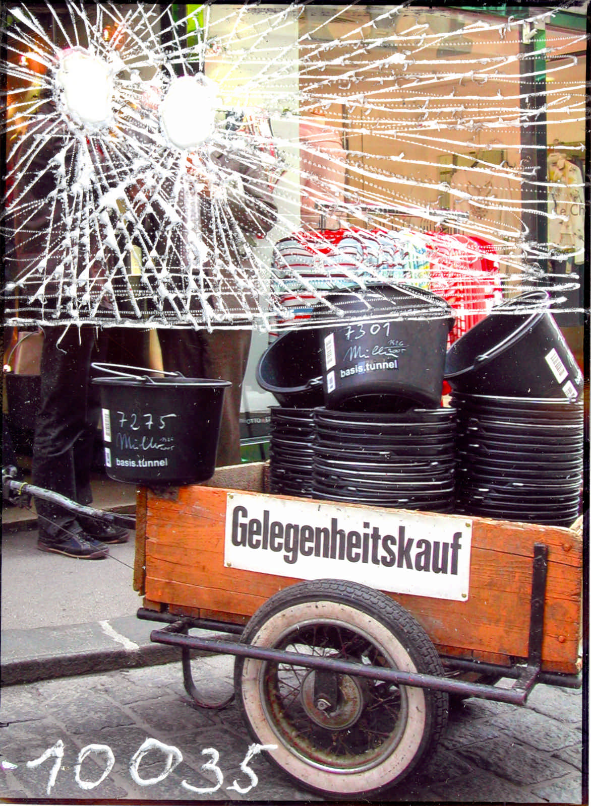 Diese Kunst-Kübel sind für museal veranlagte Proponenten des Projekts konzipiert und der Aushub aus dem Basistunnel kann darin temporär zu Hause, im Museum, im Tresor usf. zwischengelagert werden, muss letztlich aber zum Endlager gebracht werden. Die Hauptbuchnummer ist mit Wachskreide geschrieben und kann daher abgerieben werden. Früher oder später lösen sich ohnehin alle Kunstwerke auf, ob sie nun im Museen lagern oder anderswo.