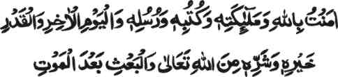 malaa-i-katihi wa kutubihi wa rusulihi wal jaumi-l-akhiri wal qadri khairihi