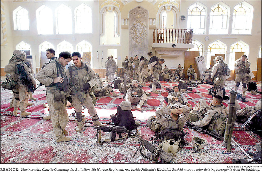 Gruppe der US Armee in einer Moschee von Falouja.