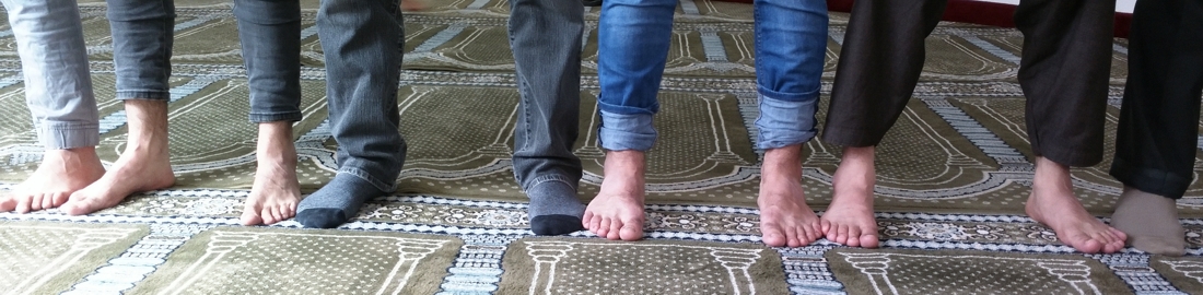 (Rechtschulen) sollen die Füße während des Gebets mit den Nebenbetenden zusammengehalten