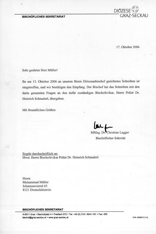 Deutschfeistritz, am 2. Schawwal 1427 (26.Oktober 2006)