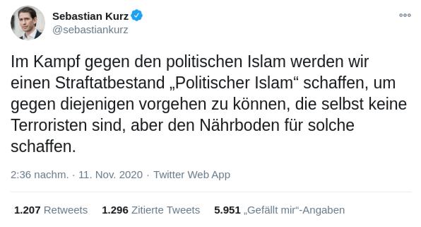 02.11.2020 verübte ein 20-jähriger muslimischer Mann in der Wiener