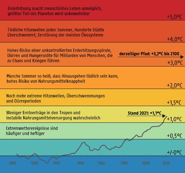 Wirtschaftswachstum ist längst zur Umweltzerstörung geworden. Muhammad Abu Bakr Müller 2019 . Klimaschonung und Wirtschaftswachstum: beides zugleich ist ein Widerspruch. Wenn es stimmt, dass der Klimawandel selbst gemacht ist, dann muss die aktuelle Überproduktion drastische reduziert werden. Die "heilige" Kuh namens Wirtschaftswachstum gilt es zu schlachten zusammen mit dem Glauben an grüne Energie als Lösung, denn mit diesem Glauben wird die Kuh nur immer fetter. Umweltkatastrophen und Überproduktion sind eine untrennbare Einheit. Das Bekenntnis zur Wirtschaftsreduktion ist nötig. Dogmen der demokratischen Religion aber - wie etwa Konsumfreiheit oder Wirtschaftswachstum - verhindern jegliche Einsicht, denn der Demokrat fragt sich wozu lebe dann noch wenn der Konsum wegfällt. Die Konsumgesellschaft ist mit Heroinsüchtigen zu vergleichen: Sie muss immer (mehr) konsumieren und hofft auf die Kernfusion um mit beliebig viel grünen Strom weiterhin beliebig viel Energie für das Wirtschaftswachstum zu haben. Je mehr Wirtschaftswachstum, also je mehr produziert wird, desto schlechter ist das für das Gleichgewicht des Klimas und grüner Strom ohne Produktionsrückgang ändert daran nichts. So könnte z.B. jedes Fahrzeug je nach Schädlichkeit für alle gefahrenen Kilometer mit Gebühren belegt werden. Die ersten tausend Kilometer im Jahr gebührenfrei, jedoch mit allen weiteren 1000 Kilometern steigen die Gebühr progressiv an. Fahrten würden sich schnell reduzieren während Treibstoffsteuern das Wirtschaftswachstum nur fördern. Besser eine geordnetes Herunterfahren der Überproduktion als laufende Klimakatastrophen. Ohne echter Lebensqualität ist es aber unmöglich freiwillig auf den Konsumwahn zu verzichten und Politiker der demokratischen Religion werden gewählt um die bestehende Überproduktion wachsen zu lassen. Dem nach müssten Politiker als Klimaterroristen angesehen und bestraft werden. Aber von Wem?