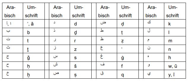 niedergelegt in der Schrift: Die Transliteration der arabischen Schrift in