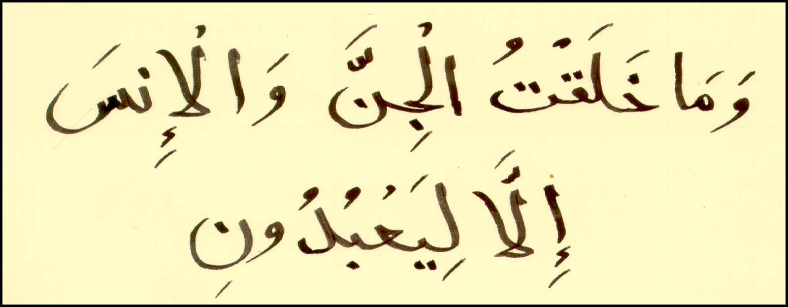 "wa maa khalaqtu-l-dschinna wa-l-insa illa liabuduun"