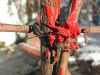 Die Durchreibung als Manifestation der Abwesenheit der Bildfläche. Ein Hinweis, auf den Bereich, der über die sinnliche Erfahrungen hinausreicht. Luft ist eines der Elemente der Malerei. Die Durchreibung produziert Abwesenheit der Bildfläche. Mittels solcher Lüftungen (Durchbohrungen, Herausschneidungen, Ausbrennungen usw.) in der Bildfläche entsteht ein Leer-Raum als eines der .Elemente der Malerei. Es handelt sich dabei nicht um ein "Hinzutun" sonder nun ein Wegnehmen durch welches nicht nur die Umgebung des Weggenommenen eine neue Bedeutung bekommt, sondern ein Schutz für die undarstellbare spirituelle Realität der Person, an deren Realität (die Seele) nur mehr transzendent hingewiesen wird. Luft gehört wie Feuer und Wasser zu den flüchtigen Elementen der Malerei, doch das Loch präsentiert auch das "Nichtsein" (La Makaan) bzw. die Abwesendheit eines Malgrundes so wie im Pullover das durchgescheuerte Stück, welches in das Grab mitgenommen wird und dort seine Realität zurückbekommt .. ... mehr. Technisch gesehen - sofern der Malgrund Papier ist - habe ich solange gerieben bis ein Loch entstand; bei Leinwandgemälden habe ich Löcher in die Leinwand geschnitten und bei Dias oder Negativen mit dem Lötkolben transzendiert.