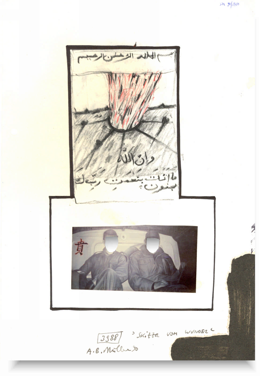 296 x 210 mm | Asche, Kohle, Tinte, Photographie auf Papier | 1410 / 1990
