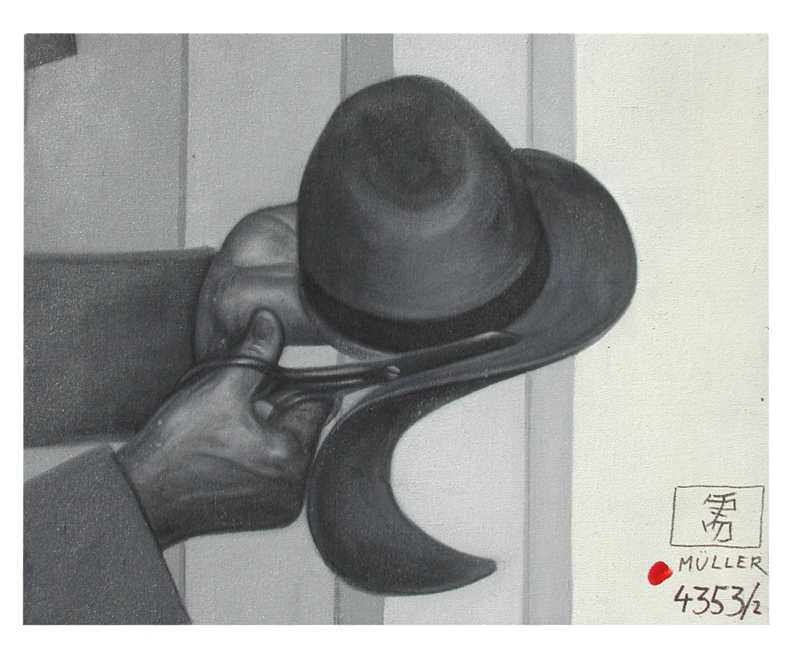 Boden drücken will. Also schneidet er die Hutkrempe ab um seinen