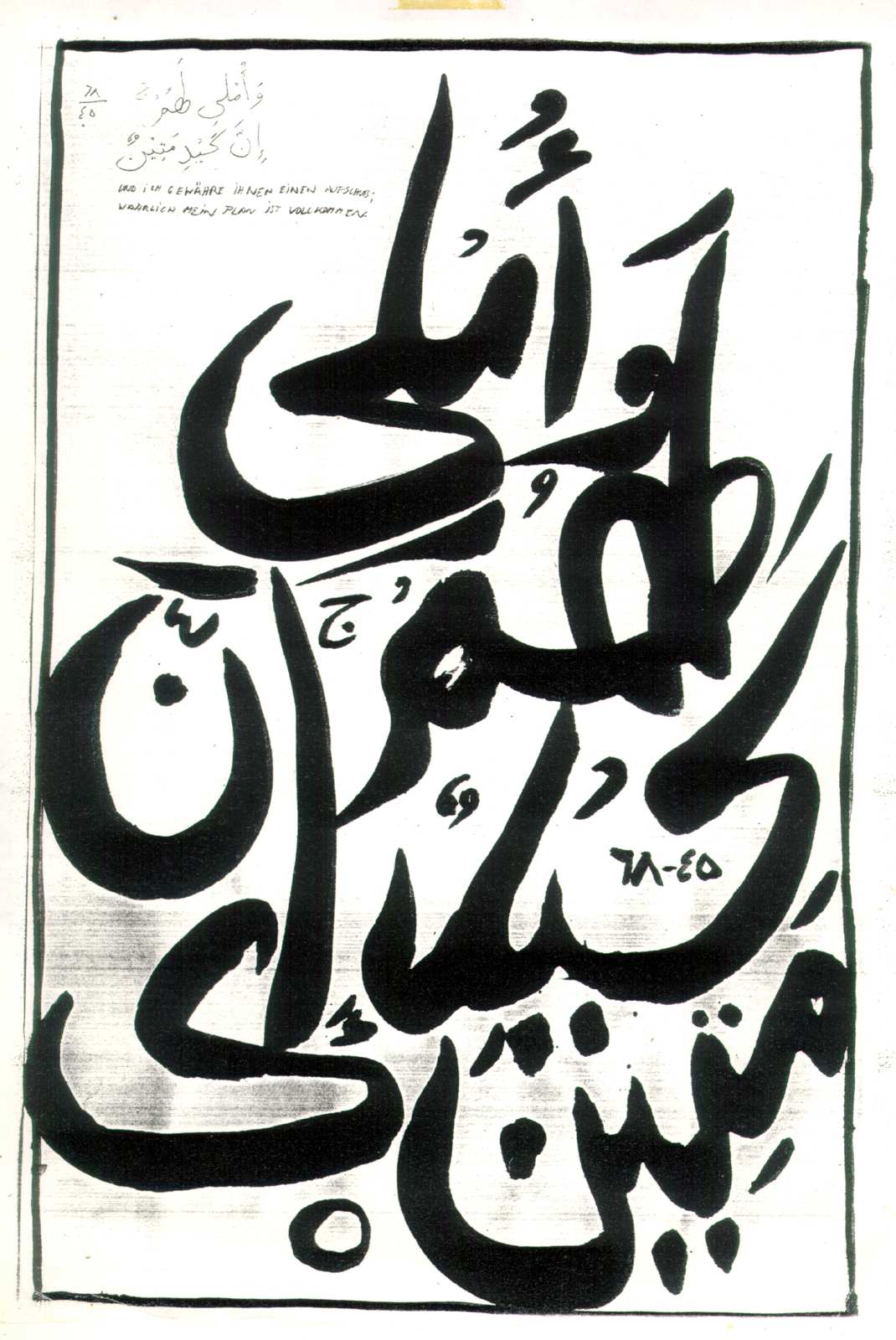 "Und Ich gewähre ihnen eine Frist; wahrlich mein Plan ist vollkommen" Suratu-l-Qalam (Das Scheibrohr) 68:45