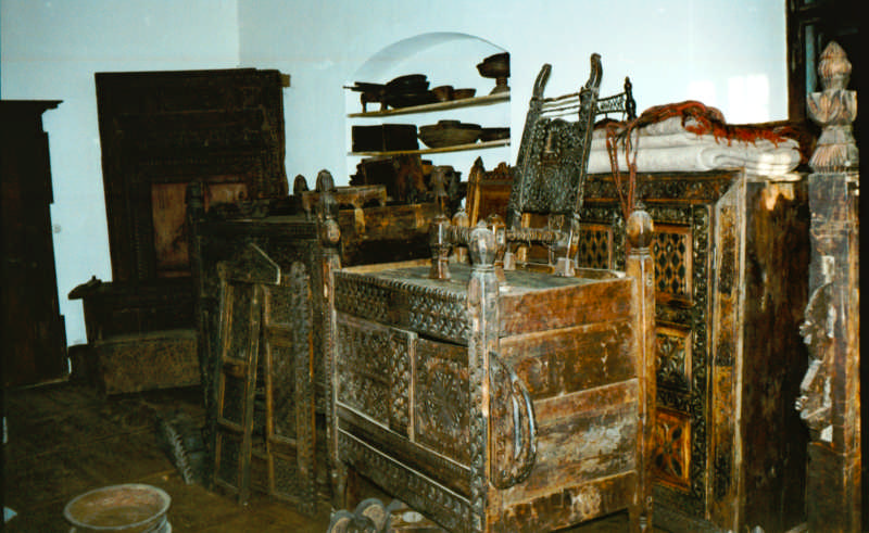 (amtlich Übersiedlungsgut von Pakistan nach Österreich) : Holzmöbel, Türen, Sessel, Betten, Matten usf. aus den Tälern des Hindukusch - importiert als "Übersiedlungsgut". Das echte Hab und Gut aber, das ist nur das, was man beim Übersiedeln in das nächste Leben mitnimmt.