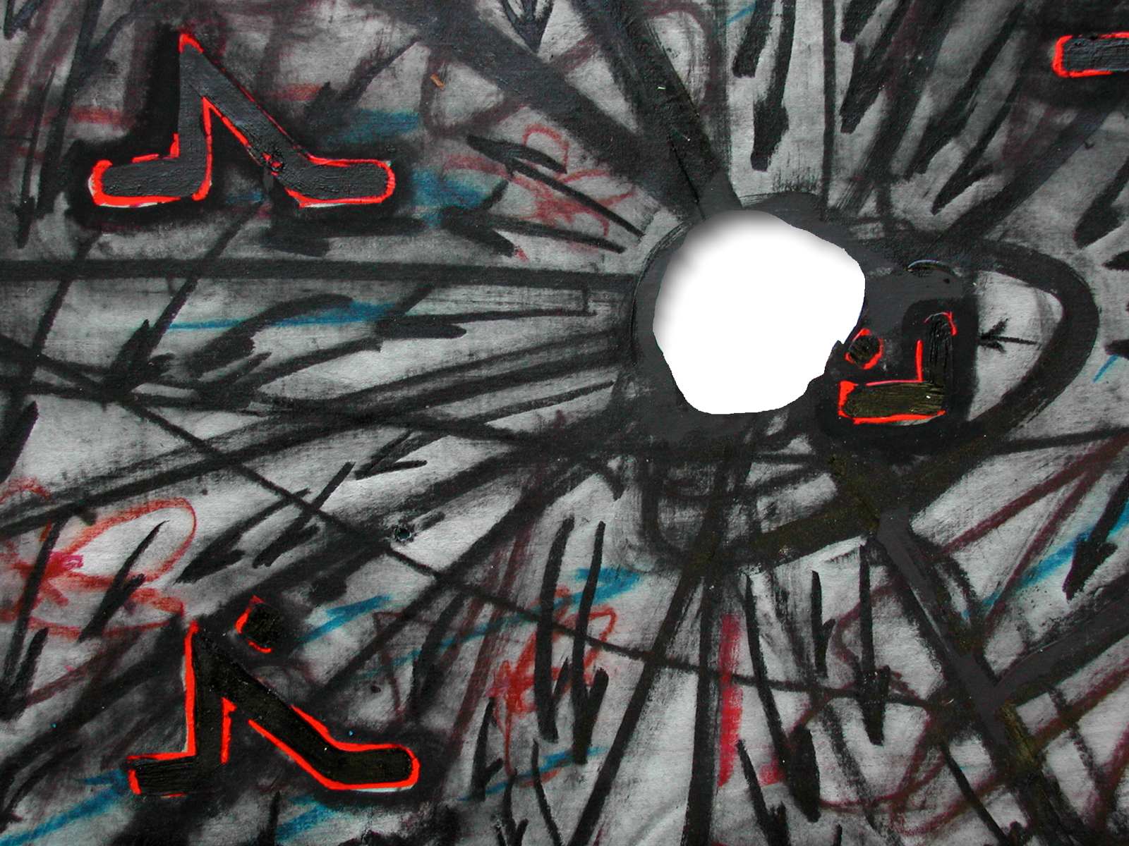 146 x 200 cm | Pastell und Öl auf los hängender Leinwand | Strassengel 1411 (1990) Achtung: Tuch brüchig