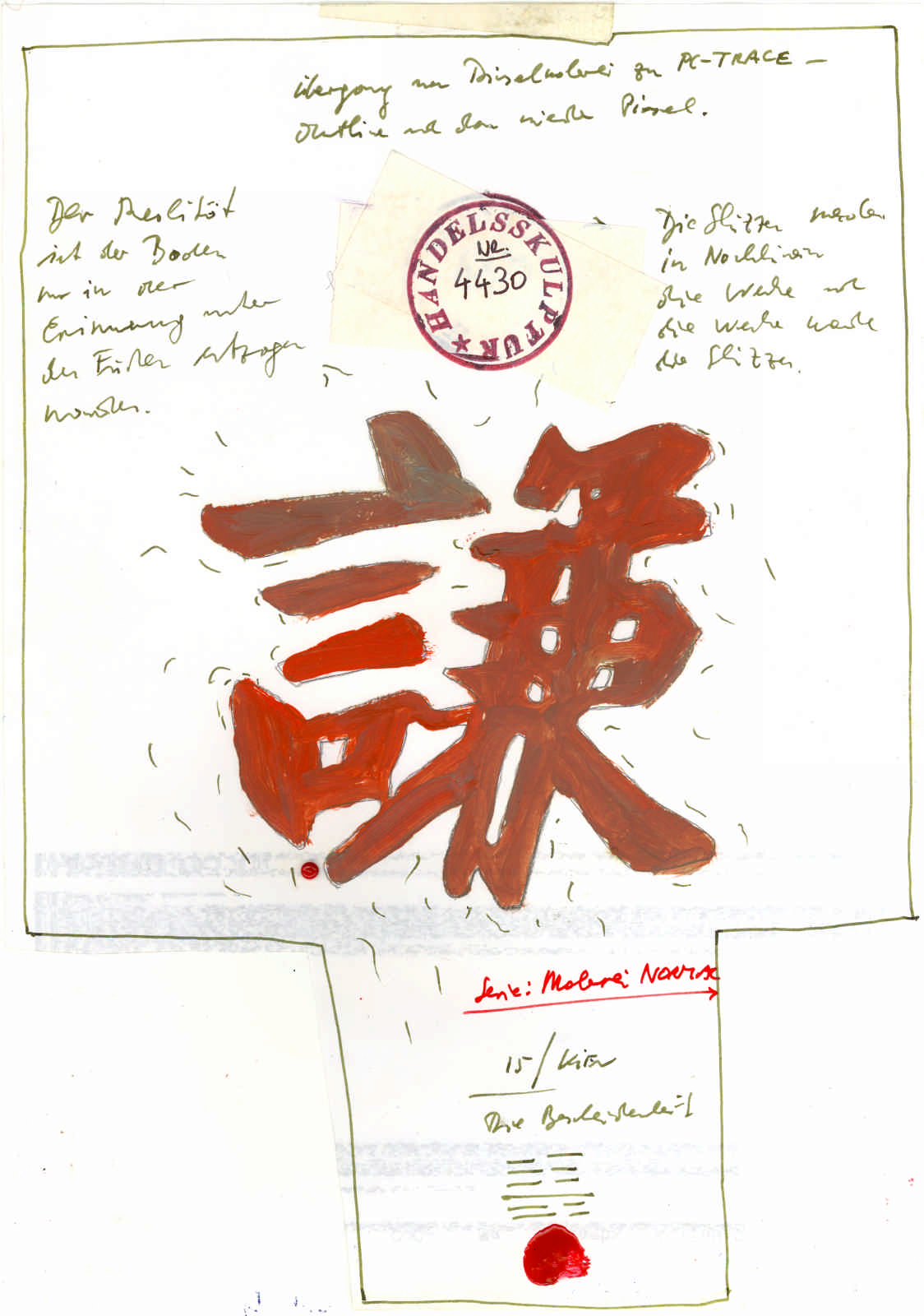 ...Dokumente, welche nicht einer spezifischen Mappe zugeordnet sind. In dieser Gemäldeserie sind eine Reihe von Projekten mittels Malerei dokumentiert, so wie das einst in der Kriegsberichterstattung üblich war. Durch Darstellungen beseelter Wesen - die primitivste Kunst - wird im Betrachter eine emotionale Wirkung erzielt wird weil er sich grundsätzlich selbst (als Mensch) im Bild erkennt. .....