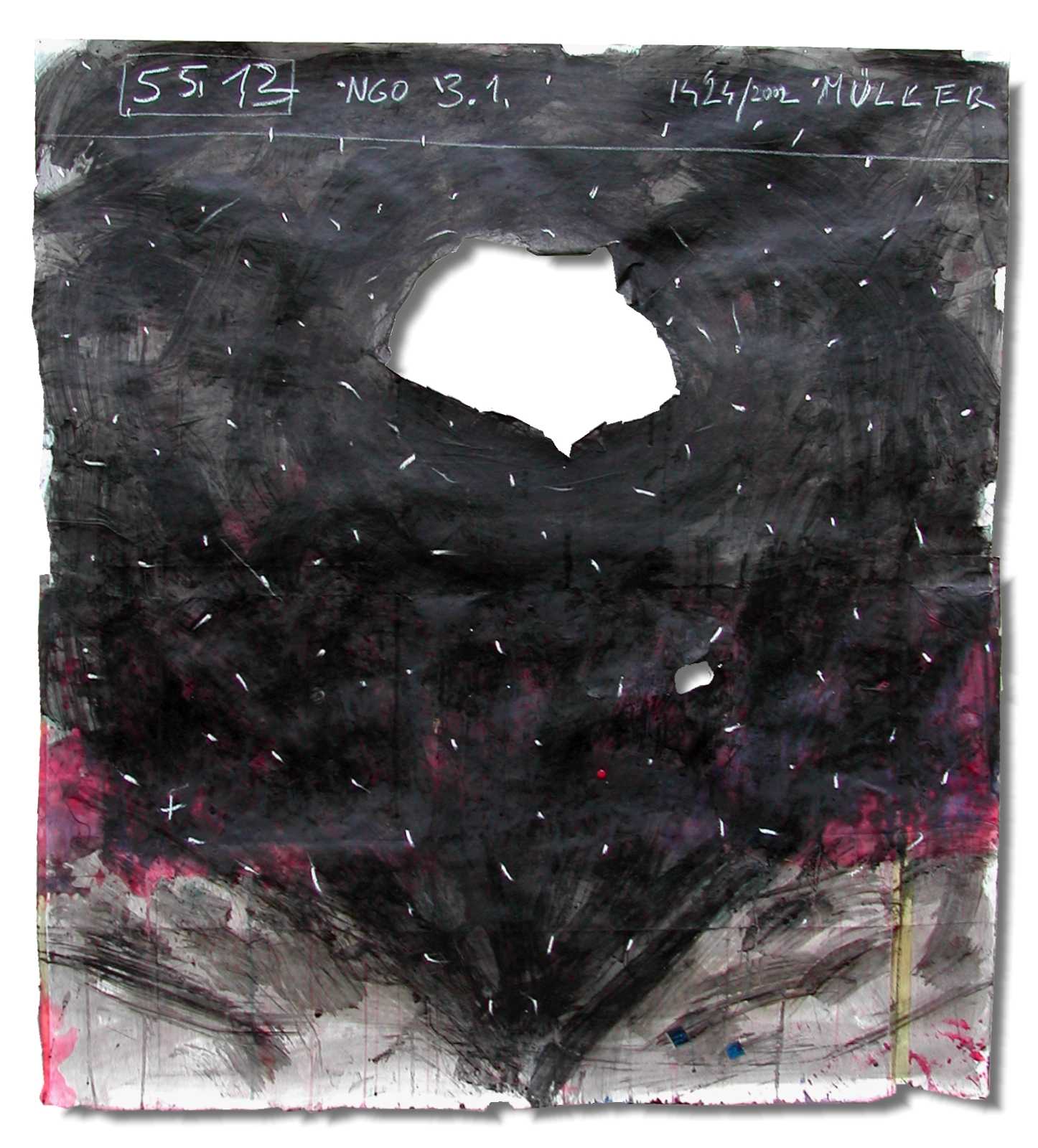 cm Russ, Farbe, Papier / Notes, durchgerieben 1423 (2002)