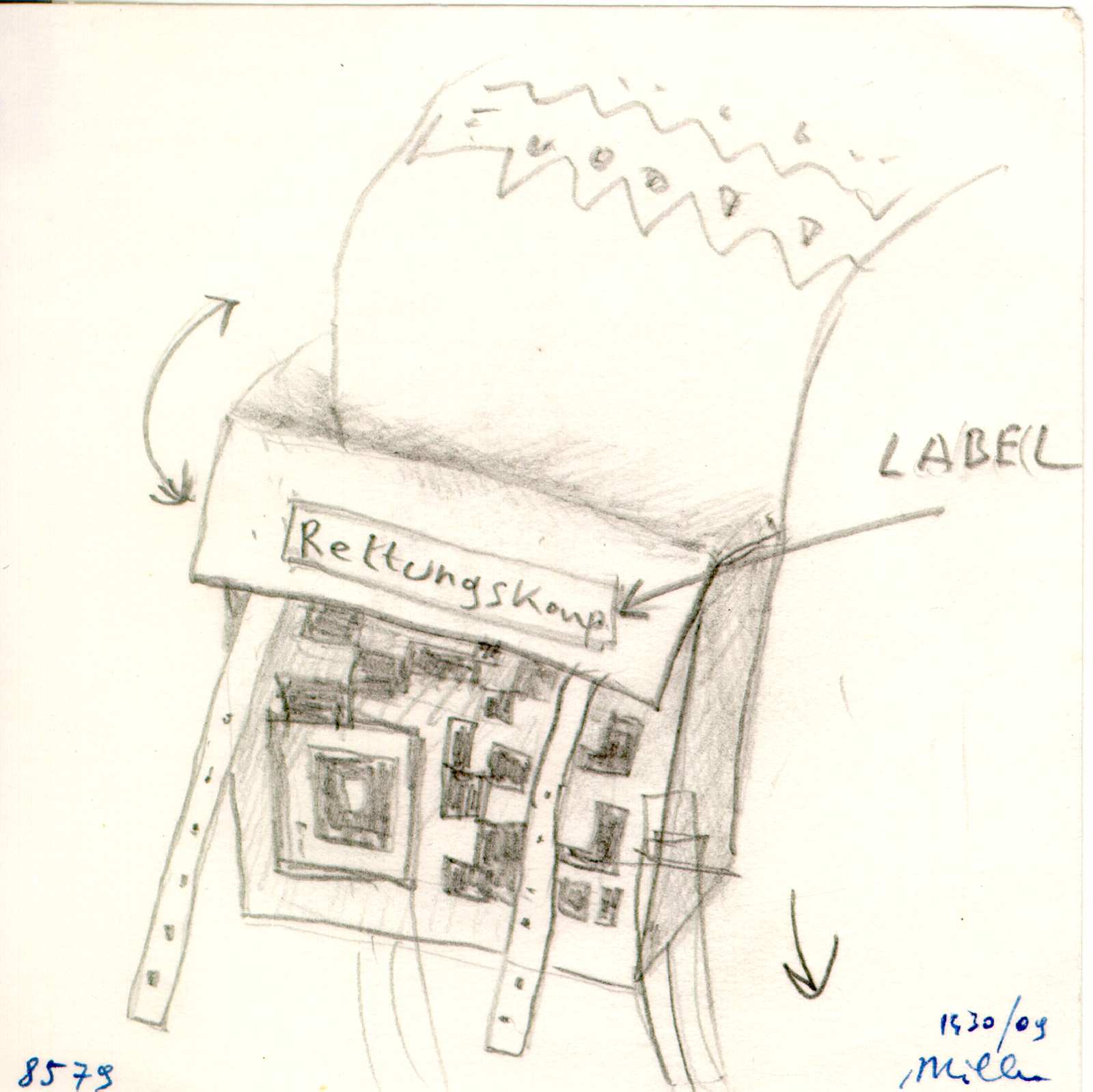 . Eseltaschen dienen Eseltreibern zum Transportieren von Aushubmaterial aus dem Basistunnel. Die Eseltaschen wurden in einem Stück gewebt bzw. geknüpft und mit Ledergurten versehen. Jede dieser Eselttasche hat auf ihren Aussenseiten einen RQ-Codes, der mit Wolle von schwarzen und weissen Schafen geknüpft ist. Im Mittelteil, dort wo die Tacshe über dem Rücken des Esels hängt, ist ein individuelles Muster des Knüpfers eingewebt. Die Kunstseidefütterung im inneren der beiden Kammern dient den Spiegelputzern zur Sicherung des feinsten Schürfmülls während des Transports bis zum Zwischenlager. Die geknüpften Smartcodes dienen mittels Rettungsm@il zur Überwachung des aus dem Basistunnel abtransportierten Aushub. Die Befestigung der Eseltaschentaschen am Esel erfolgt mittels Packsattel. |
